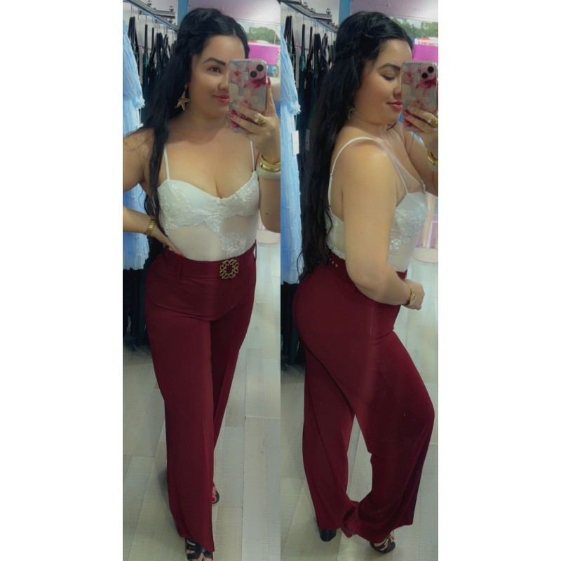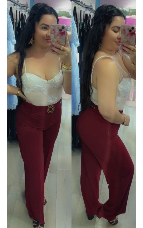 Pantalon large taille haute avec ceinture, fermeture sur le côté, matière élasthane