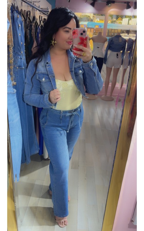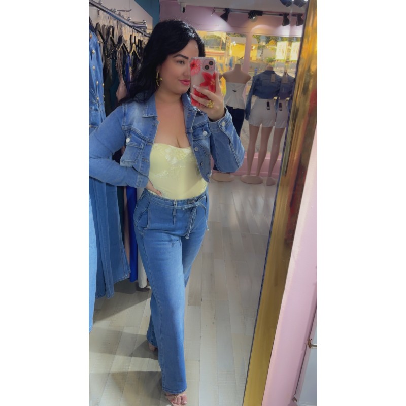 Veste en jeans courte, cintrée, elasthane, détail déchirée sur le bas