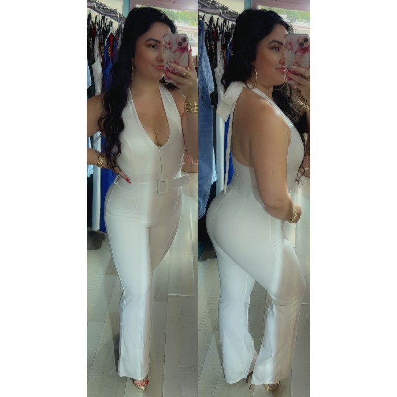 Combinaison dos nu avec ceinture, coques intégrées, ceinture réglable à l'avant, fermeture zip invisible à l'avant
