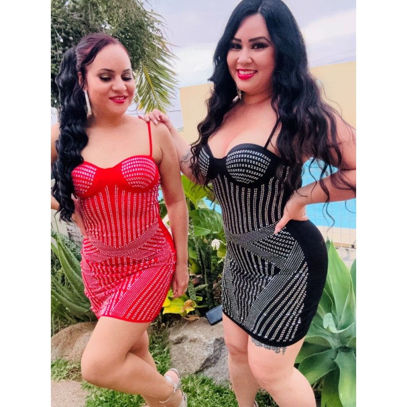 Robe près du corps, entièrement strassée à l'avant, coques intégrées, bretelles réglables