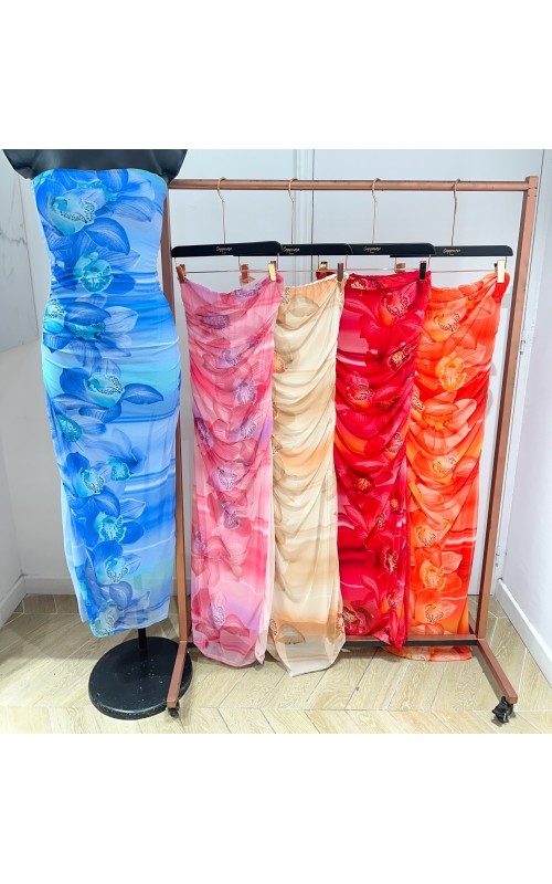 Robe bustier drappée bi-matière, doublure intégrée, matière extensible